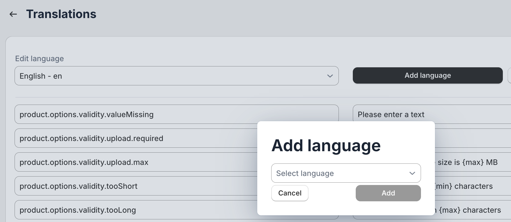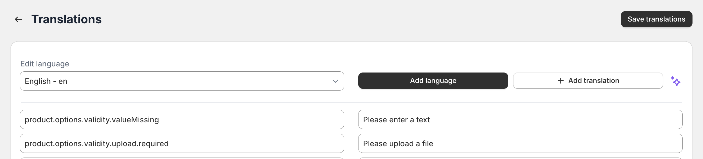 You can also add your own translations and use them in the options configurations, to learn more visit: How can I translate product options?