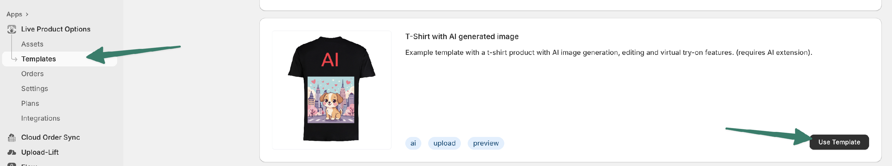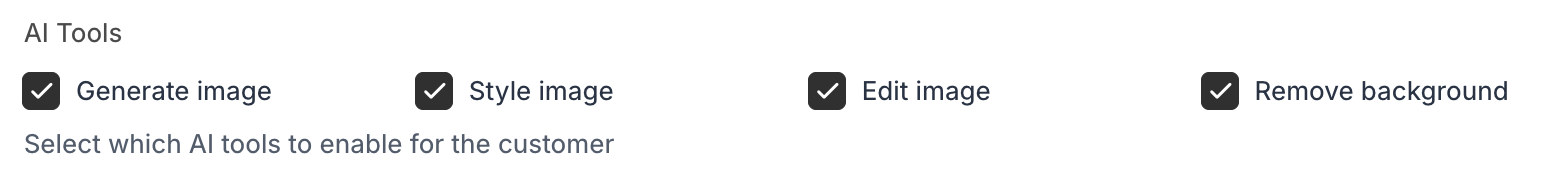 Enable the AI Tools you want to offer your customers during the product configuration process: