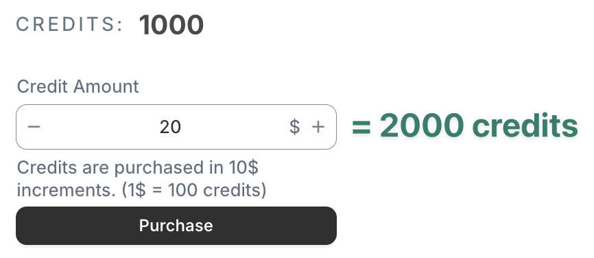 After you've enabled the extension, your account will receive 1000 credits once. The credits do not auto-renew each month. 1$ = 100 credits / 1 credit = 0.01$