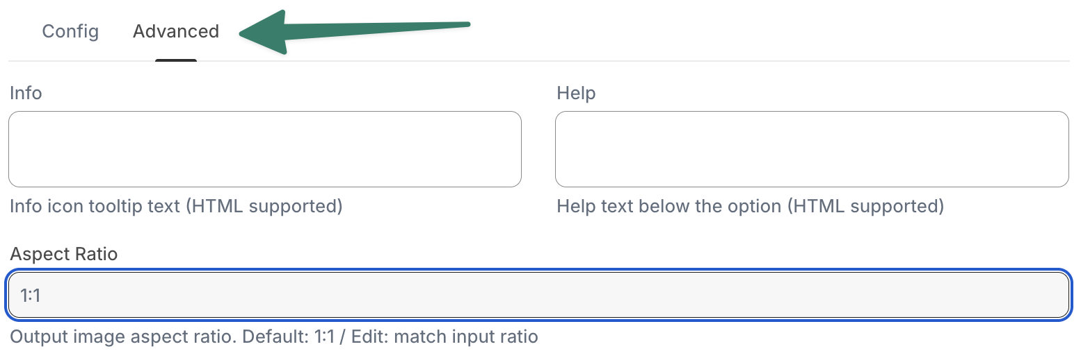 The default output is 1:1 or when images are edited the input aspect ratio is preserved. Custom output ratio can be configured on the Advanced tab of the AI option: