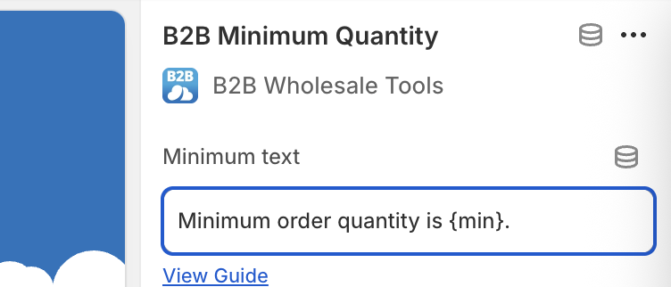 You can fully customize and translate the minimum quantity text directly on the app block:
