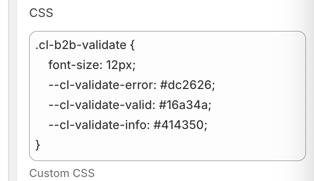 .cl-b2b-validate { font-size: 12px; --cl-validate-error: #dc2626; --cl-validate-valid: #16a34a; --cl-validate-info: #414350; }