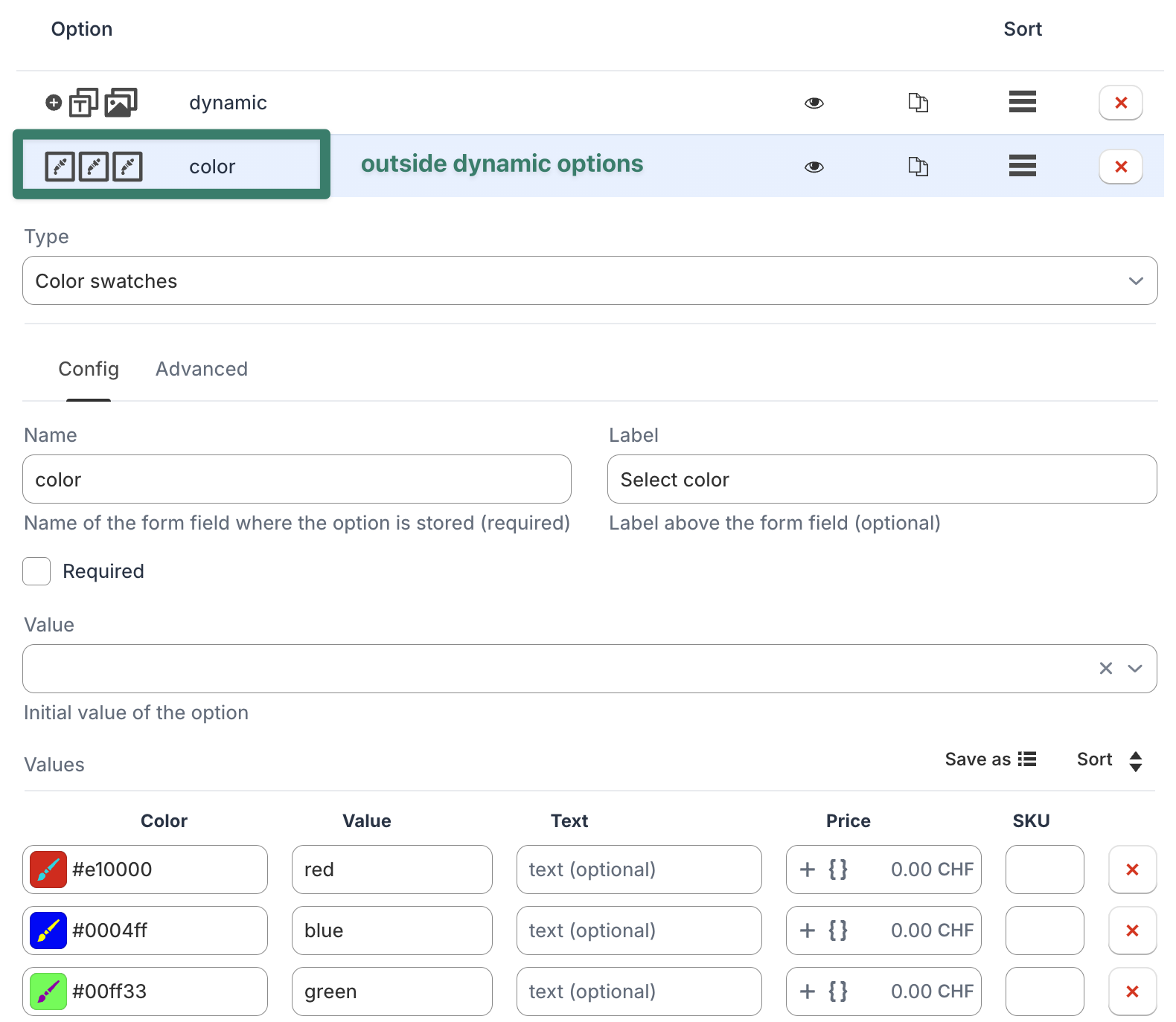 Dynamic Options settings