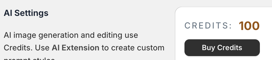 The AI image tools spend credits. Each subscription plan comes with 100 credits, when the credits are used up, you can purchase additional credits in the App > Settings > AI Settings section: