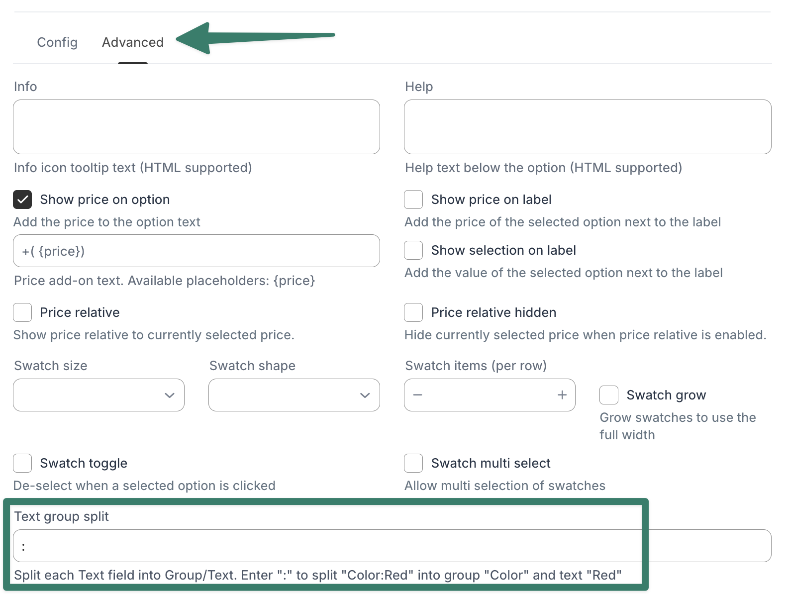 Select, Dropdown, Image Swatches, Button Swatches, Color Swatches